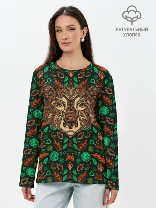 Лонгслив женский. Хлопок / Лесной Орнамент | Медведь