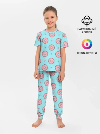 Детская пижама с брюками / Розовые пончики