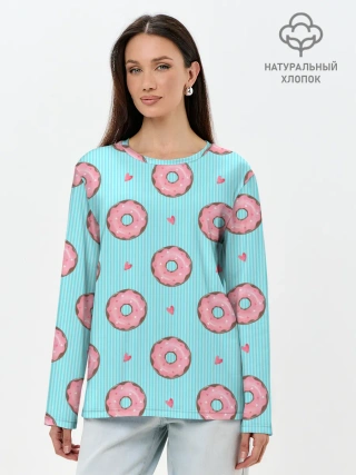 Лонгслив женский. Хлопок / Розовые пончики