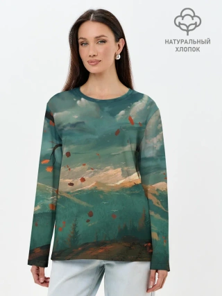Лонгслив женский. Хлопок / Горы