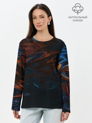 Лонгслив женский. Хлопок / Абстракция разводы красок