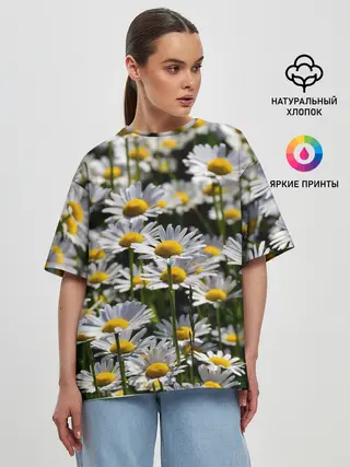 Женская футболка оверсайз / Ромашки