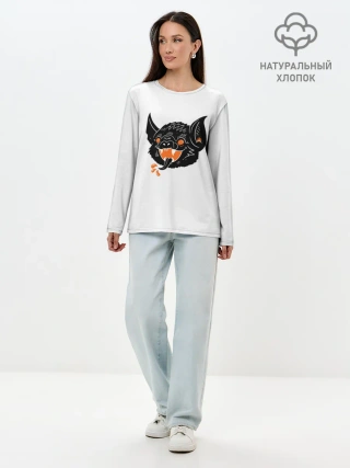 Лонгслив женский. Хлопок / Черная Летучая Мышь