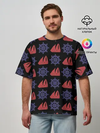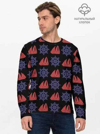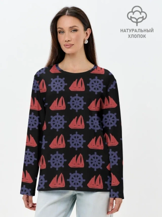 Лонгслив женский. Хлопок / Корабли и штурвалы