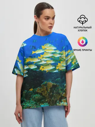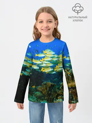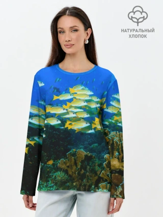 Лонгслив женский. Хлопок / Коралловые рыбки