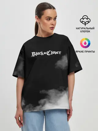 Женская футболка оверсайз / Логотип Черного Клевера в дымке