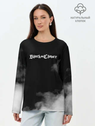 Лонгслив женский. Хлопок / Логотип Черного Клевера в дымке