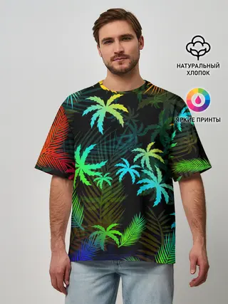 Мужская футболка оверсайз / ПАЛЬМЫ / ТРОПИКИ