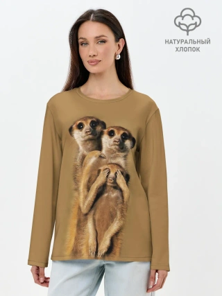Лонгслив женский. Хлопок / Сурикаты