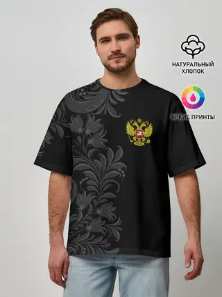 Мужская футболка оверсайз / Герб России и Орнамент
