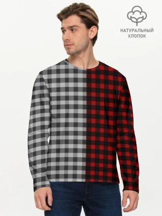 Мужской лонгслив базовый / Красно белая рубашка в клетку