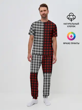Мужская пижама с брюками / Красно белая рубашка в клетку