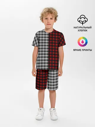 Детская пижама с шортами / Красно белая рубашка в клетку