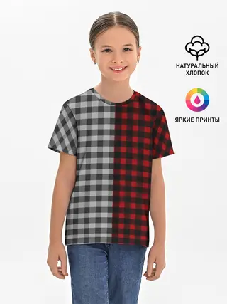 Детская базовая футболка / Красно белая рубашка в клетку
