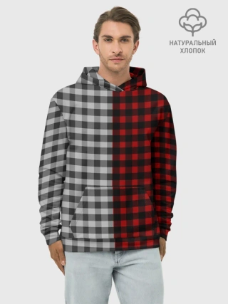 Худи мужской база хлопок / Красно белая рубашка в клетку