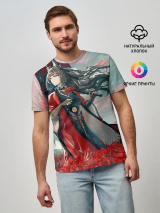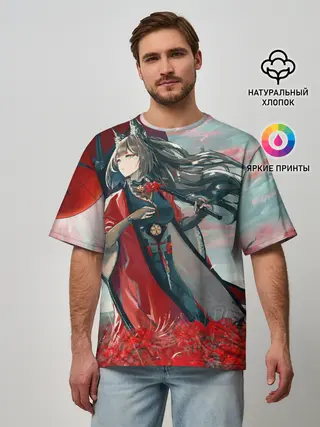 Мужская футболка оверсайз / Azur Lane red flowers