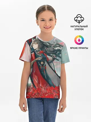 Детская базовая футболка / Azur Lane red flowers