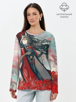 Лонгслив женский. Хлопок / Azur Lane red flowers