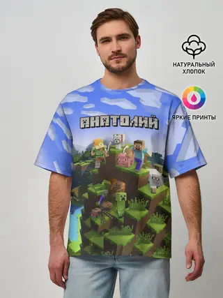 Мужская футболка оверсайз / Анатолий - Minecraft