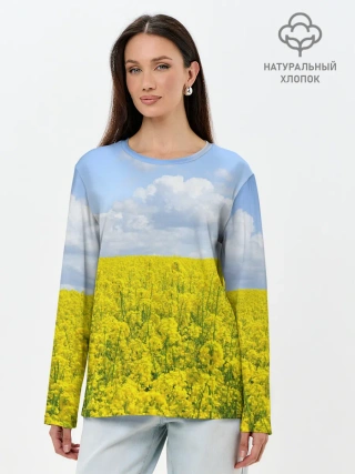 Лонгслив женский. Хлопок / Желтый цвет весны