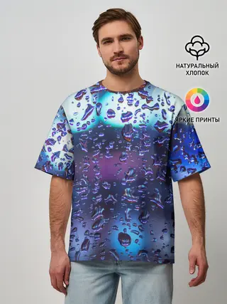 Мужская футболка оверсайз / Капли на стекле макро