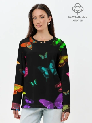 Лонгслив женский. Хлопок / Ночные Бабочки