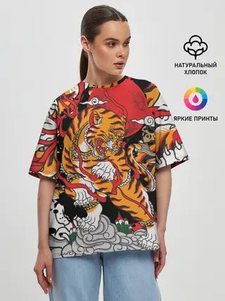 Женская футболка оверсайз / Самурайский тигр