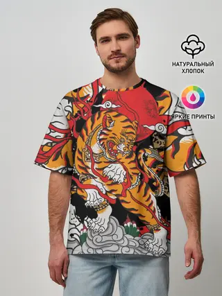 Мужская футболка оверсайз / Самурайский тигр