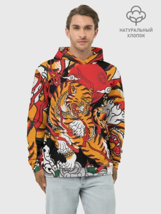 Худи мужской база хлопок / Самурайский тигр