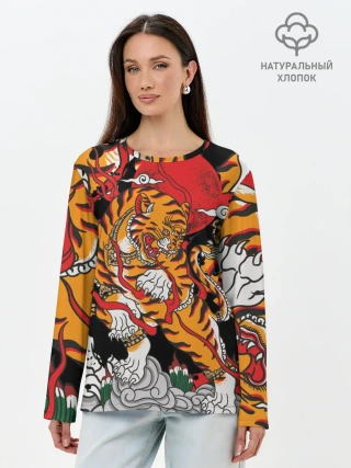 Лонгслив женский. Хлопок / Самурайский тигр
