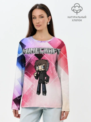 Лонгслив женский. Хлопок / Майнкрафт