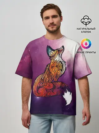 Мужская футболка оверсайз / Космическая Лиса