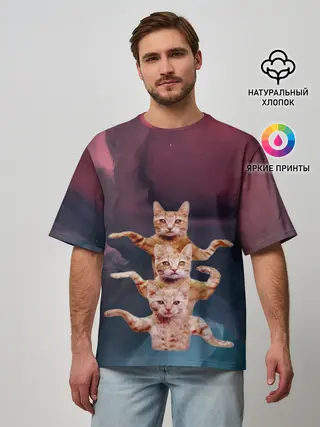 Мужская футболка оверсайз / Танцующие коты