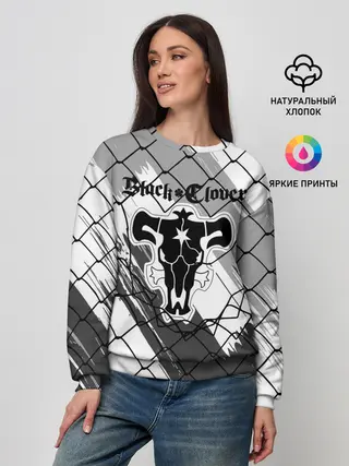 Женский свитшот / Чёрный клевер бык за решеткой.