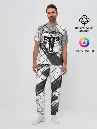 Мужская пижама с брюками / Чёрный клевер бык за решеткой.