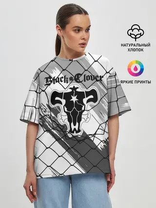 Женская футболка оверсайз / Чёрный клевер бык за решеткой.