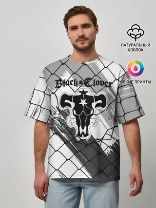 Мужская футболка оверсайз / Чёрный клевер бык за решеткой.
