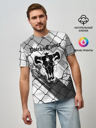 Мужская базовая футболка / Чёрный клевер бык за решеткой.