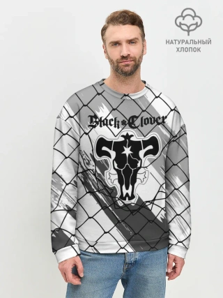 Мужской свитшот базовый / Чёрный клевер бык за решеткой.
