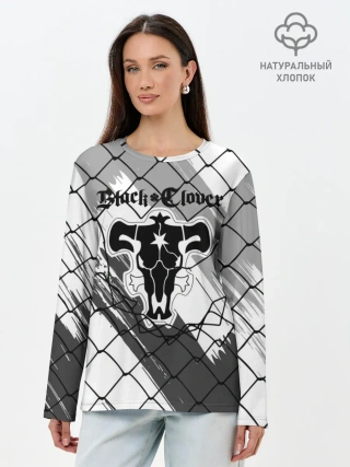 Лонгслив женский. Хлопок / Чёрный клевер бык за решеткой.