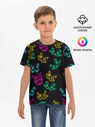 Детская базовая футболка / НЕОНОВЫЕ КОТИКИ / NEON FACES CATS