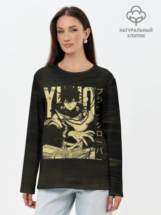 Лонгслив женский. Хлопок / Юно | Черный Клевер