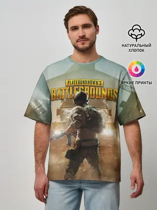 Мужская футболка оверсайз / PUBG СОЛДАТ В ШЛЕМЕ | ПАБГ