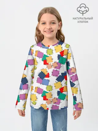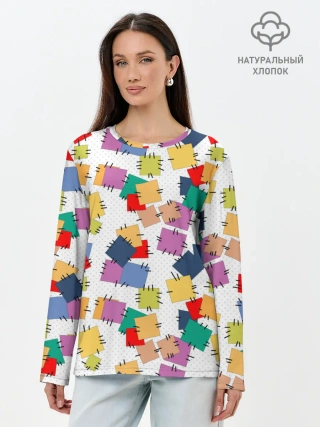 Лонгслив женский. Хлопок / Ретро узор-заплатки.