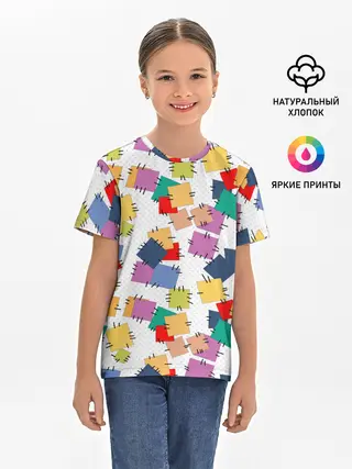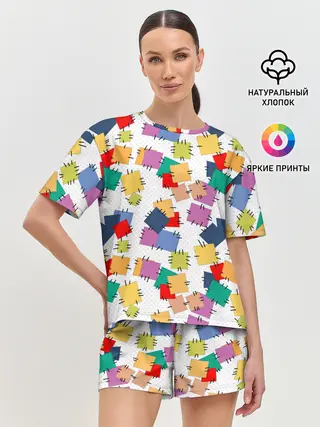 Женская футболка оверсайз / Ретро узор-заплатки.