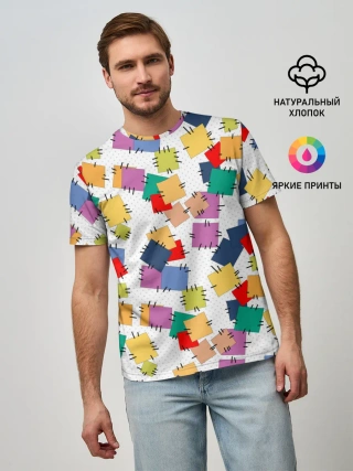 Мужская футболка оверсайз / Ретро узор-заплатки.