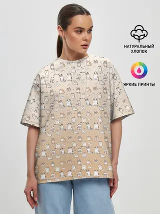 Женская футболка оверсайз / много котиков узор