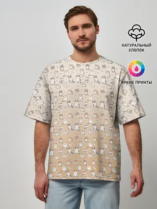 Мужская футболка оверсайз / много котиков узор