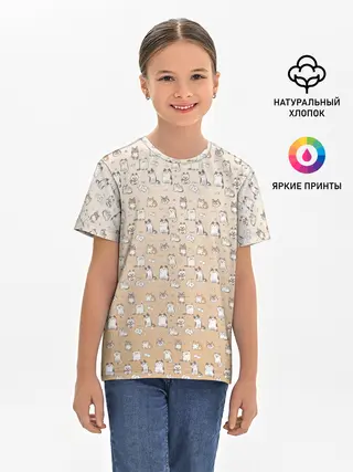 Детская базовая футболка / много котиков узор