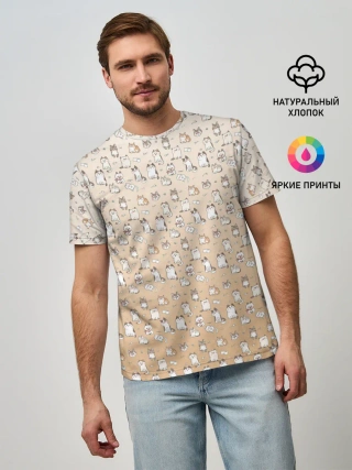 Мужская базовая футболка / много котиков узор